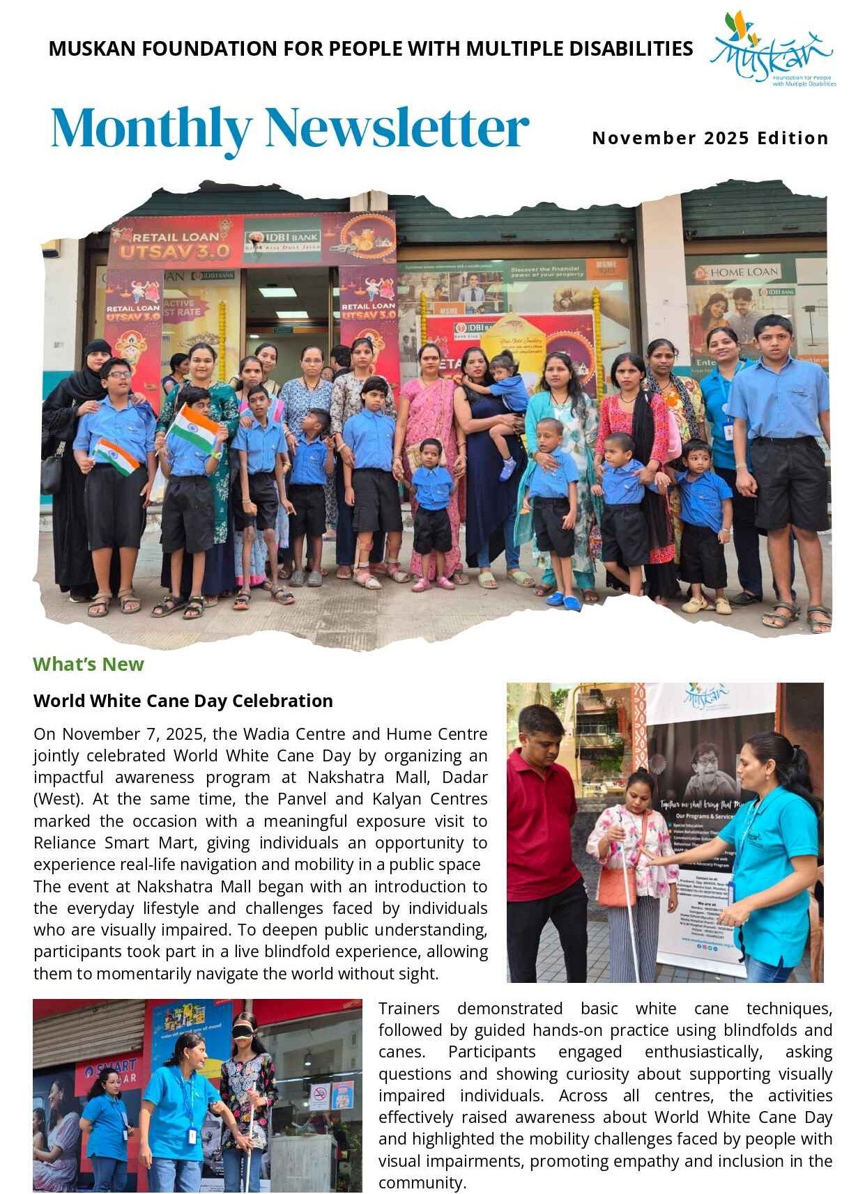 Muskan Foundation caters to Multiple Disabilities with Vision Impairment (MDVI) children enrolled in the Muskan Foundation center, by providing customised, low-cost therapies and special education under one roof. It empowers parents of MDVI children with the knowledge, skills and confidence to support their child’s unique needs and development through three core programs of Muskan Foundation, Special Education, Therapies and Advocacy and Training. To support the development of children the programs like the mother toddler program, collaboration of parents and professionals from the field of multiple disabilities and training of Special Educators are carried out. Advocacy plays a very critical role in the success of such projects. Muskan Foundation believes in creating sustainable programs and hence we encourage parents to contribute and share the cost of the program being implemented for their children.